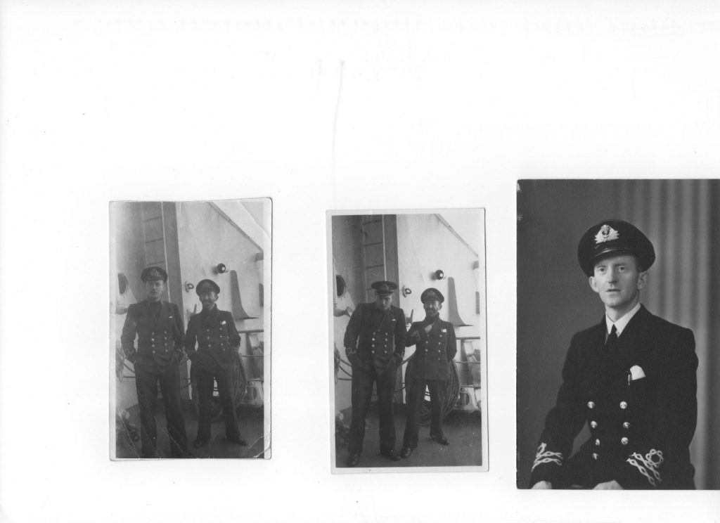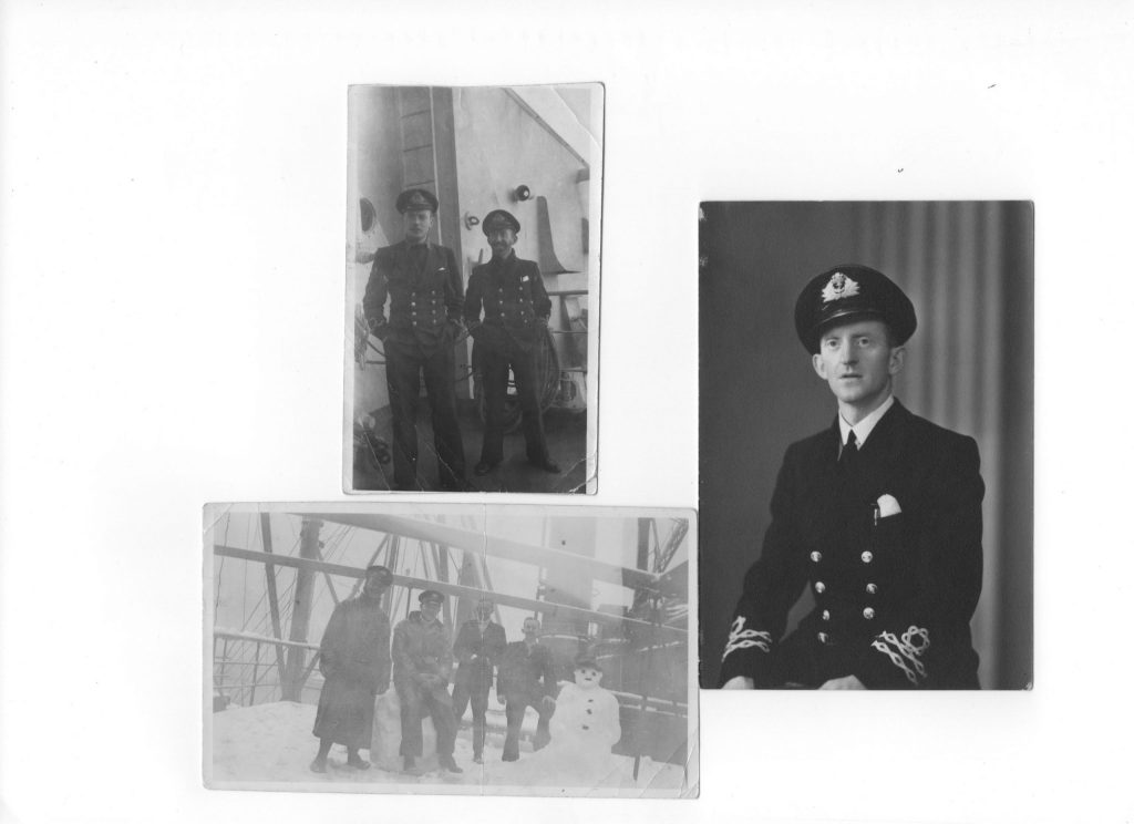 James McIntyre Thoms was born on 5 May 1912 in Dundee. He left school aged 16 and was apprenticed, for five years, to Jute Industries, Caldrum Works, to train in mechanical engineering and was subsequently retained for a further year as a journeyman. He left in 1934 to go to sea with the New Zealand Shipping Co Ltd, London as a marine engineer. In March 1942, being a merchant seaman, he was assigned to the T.124X group (in which merchant seamen served alongside Royal Navy personnel) and signed agreements to come under Royal Navy jurisdiction with a temporary commission (Royal Naval Reserve) as Lieutenant Engineer and subsequently served on three auxiliary war vessels. Via HMS Mersey (RN shore base, Liverpool) his first ship was HMS Ulster Queen (June ’42 – Jan ’43) joining her company in Belfast and sailing on her with Arctic Convoy PQ18 from Loch Ewe to Archangel returning to Belfast via the Clyde with convoy QP15. Via HMS Mersey and HMS Asbury (US Navy shore base, Rhode Island) his next ship was HMS Slinger (May ’43 – July ’44) an escort aircraft carrier obtained under the US/UK Lend Lease Agreement. Finally he served on HMS Kirriemoor (August ’44 – March ’46), a boom carrier hired (from 1940-46) by the Royal Navy. He had married Helen Bromley in February 1943 in Dundee and after dispersal from war service in April 1946 he secured employment with Barry Ostlere and Shepherd (linoleum manufacturers) in Kirkcaldy. It was there that their only child, a daughter, Lisbeth was born in 1948. Thereafter his employment was as an engineer with Tullis Russel (paper makers) in Fife; International Synthetic Rubber Ltd, Hampshire; Samuel Heap & Son Ltd (textile dyers & finishers), Rochdale; Yorkshire Paper Mills, Barnsley and finally as Chief Engineer with Gestetner Paper Manufacturers, Kilbagie in Clackmannanshire. He retired to Dundee in 1977 but sadly died two years later, aged 67, in November 1979 from lung cancer as a result of a working life spent in boiler and engine rooms. His widow survived him until 2013, aged 95, but knowing in that year he was posthumously awarded the Arctic Star medal.