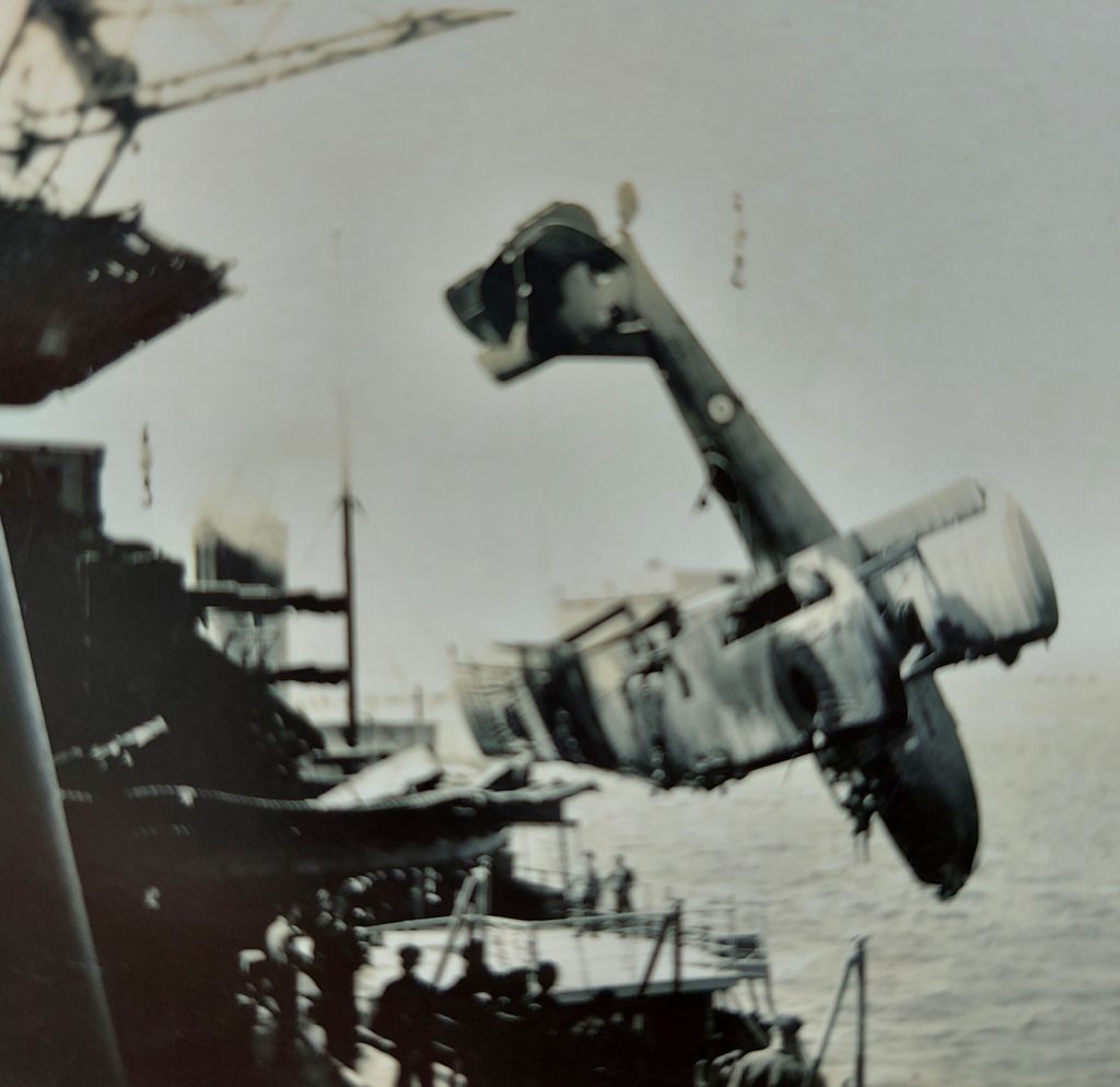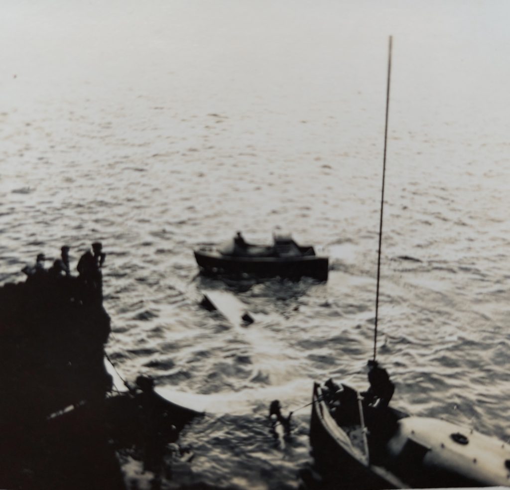 Some of the photos show a crashed Supermarine Walrus being recovered. They are all from my late father’s collection and dated 1942. I assume they are all taken from HMS Kent but do not know what happened to the aircraft or its crew. Daniel Doherty seems to have a photo of the same incident.
