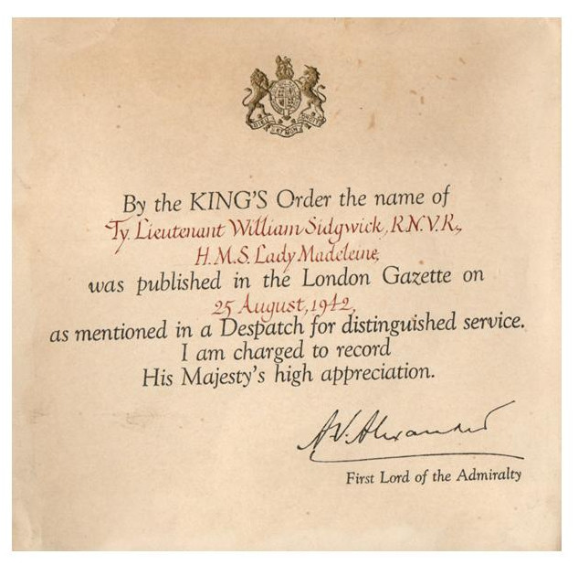 As a result of Bill’s decisive action he was mentioned in a Despatch for Distinguished Service as published in the London Gazette on 25th August 1942.